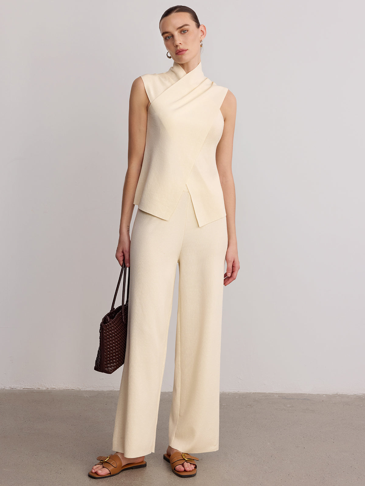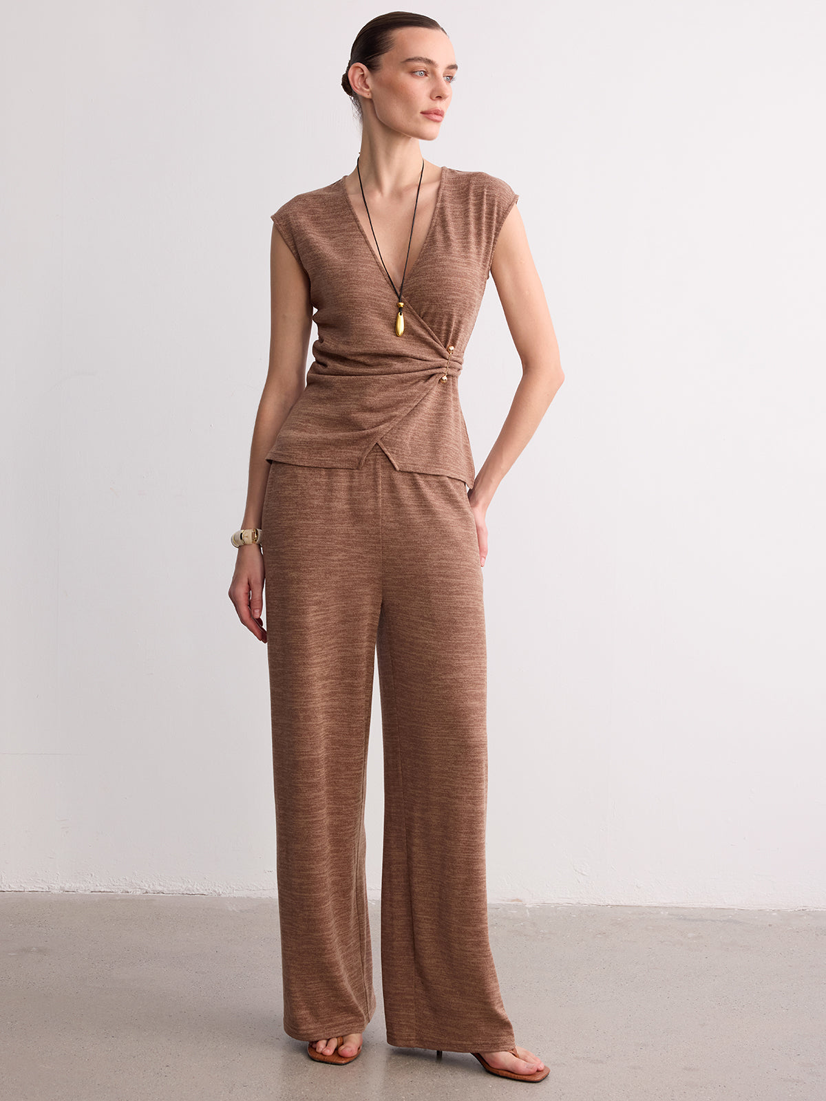 Wrap-Front Sleeveless Knit Top & Pants Set