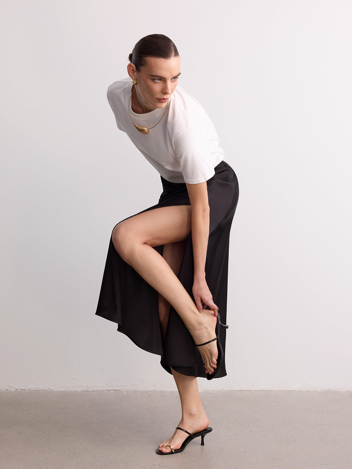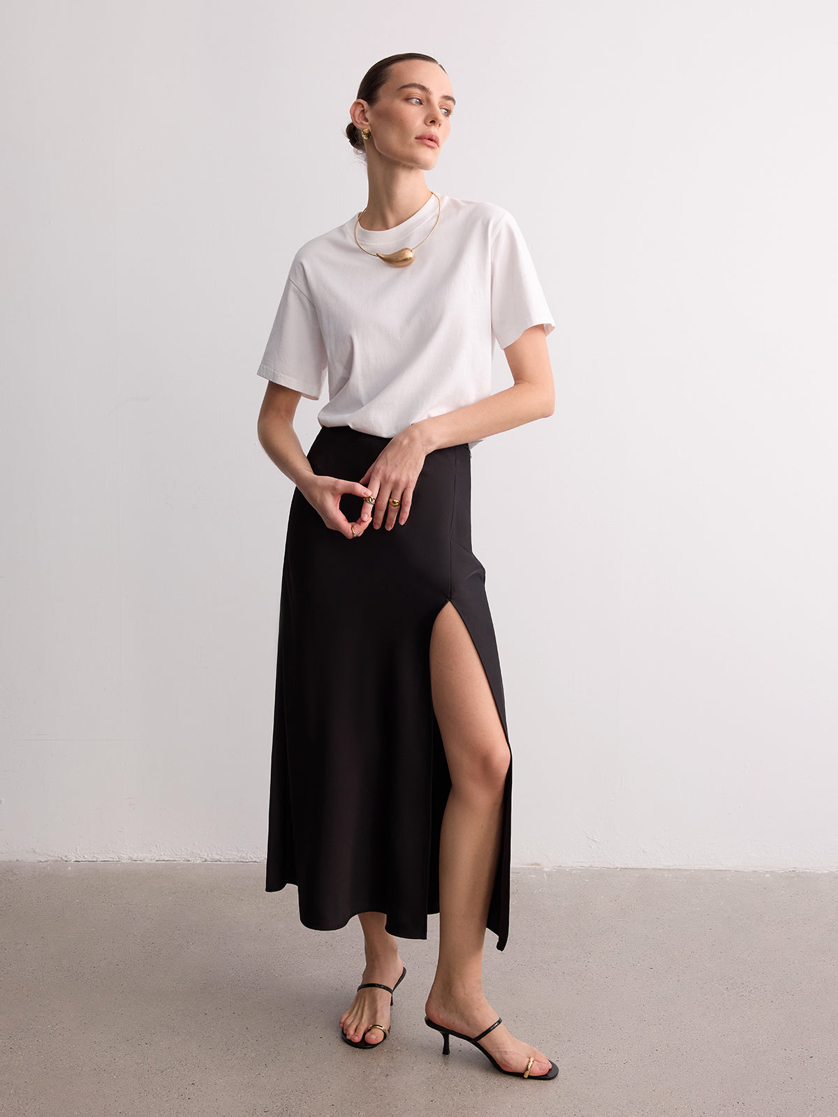 High Slit Satin Maxi Skirt