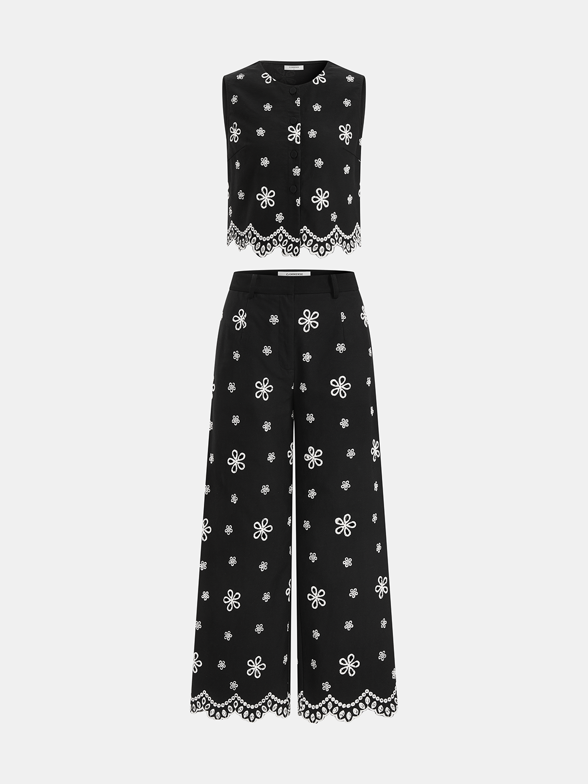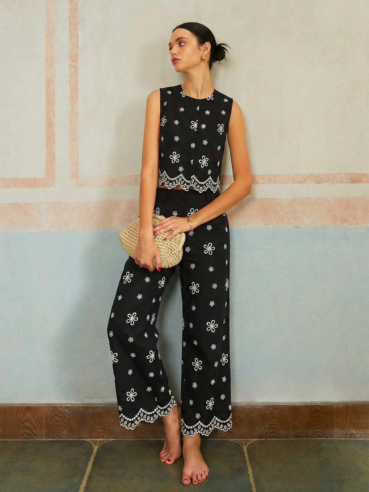 Embroidered Floral Cotton Top & Pants Set